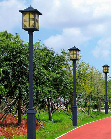 太阳能于田庭院灯以太阳辐射能为能源,白天利用太阳能电池板给蓄电池充电,晚上蓄电池给庭院灯光源供电使用,无需复杂昂贵的管线铺设,可任意调整灯具的布局,安全节能无污染,充电及开/关过程采用智能控制,光控自动开关,无需人工操作,工作稳定可靠,节省电费,免维护。